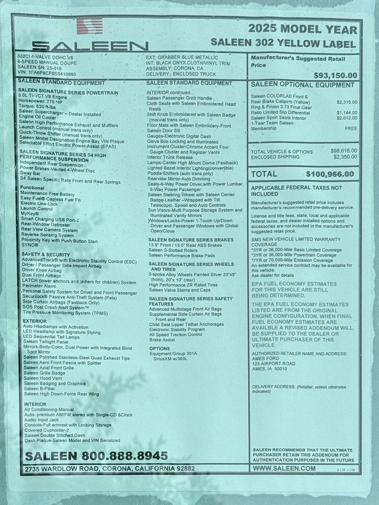 2025 Ford Mustang Saleen Yellow Label