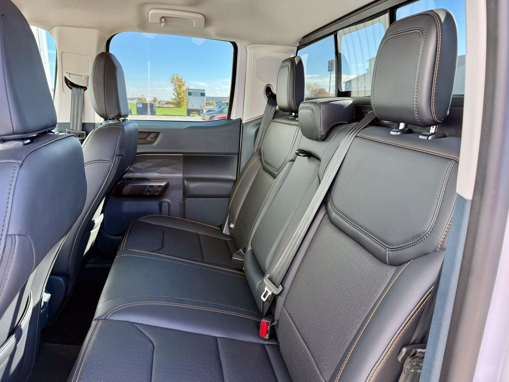 The off-road-focused Tremor trim outfits the Maverick with unique 17-inch magnetic-painted aluminum wheels, all-terrain tires, and a factory-installed 1-inch lift. Inside, you'll find durable seating surfaces with an 8-way power driver's seat, a leather-wrapped steering wheel, and orange accent stitching. The versatile cabin offers dual-zone automatic climate control and a 6-speaker audio system for a comfortable journey.