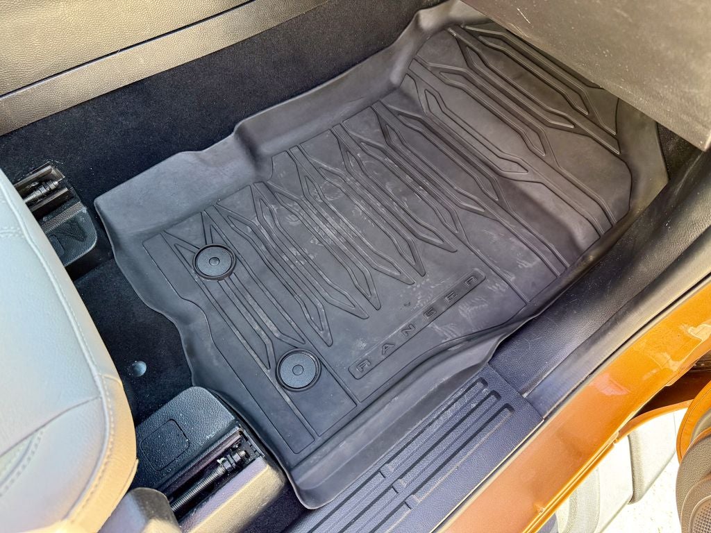 The upscale Lariat trim outfits the Ranger with 18-inch machined aluminum wheels, all-terrain tires, and signature chrome-accented styling with LED lighting. Inside, you'll find premium leather-trimmed seating surfaces with heated front seats, a leather-wrapped steering wheel with mounted controls, and elegant interior accents. The versatile Crew Cab offers comfortable seating for five and flexible cargo space, along with dual-zone automatic climate control and an 8-speaker premium B&O Sound System by Bang & Olufsen for every drive.