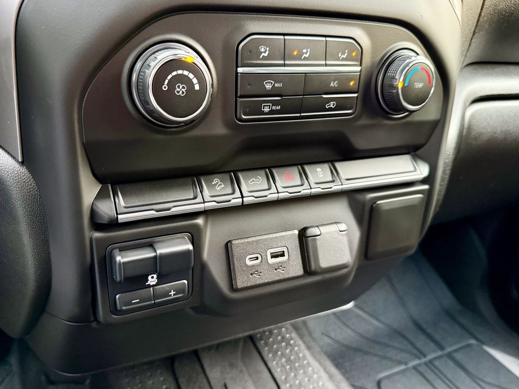 The purpose-built Trail Boss package outfits the Silverado with aggressive 18-inch high-gloss black wheels wrapped in Goodyear Wrangler DuraTrac all-terrain tires, a 2-inch factory suspension lift, and distinctive red recovery hooks. Inside, you'll find durable cloth seating surfaces with Custom trim branding and functional, easy-to-clean interior trim. The spacious Crew Cab offers comfortable seating for up to six, along with manual climate control and a 7-inch touchscreen Chevrolet Infotainment 3 system for work and adventure.