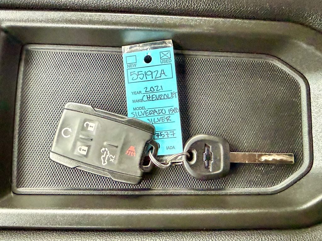 The 2021 Chevrolet Silverado 1500 Custom Trail Boss offers a commanding blend of aggressive off-road styling and proven capability, finished in a sleek Silver Ice Metallic exterior. Powered by the advanced EcoTec3 5.3L V8 engine delivering 355 horsepower and 383 lb-ft of torque, this factory-lifted truck provides confident trail performance and dependable towing power through its smooth 6-speed automatic transmission and a robust two-speed Autotrac 4WD system with an automatic locking rear differential for enhanced traction in challenging conditions.