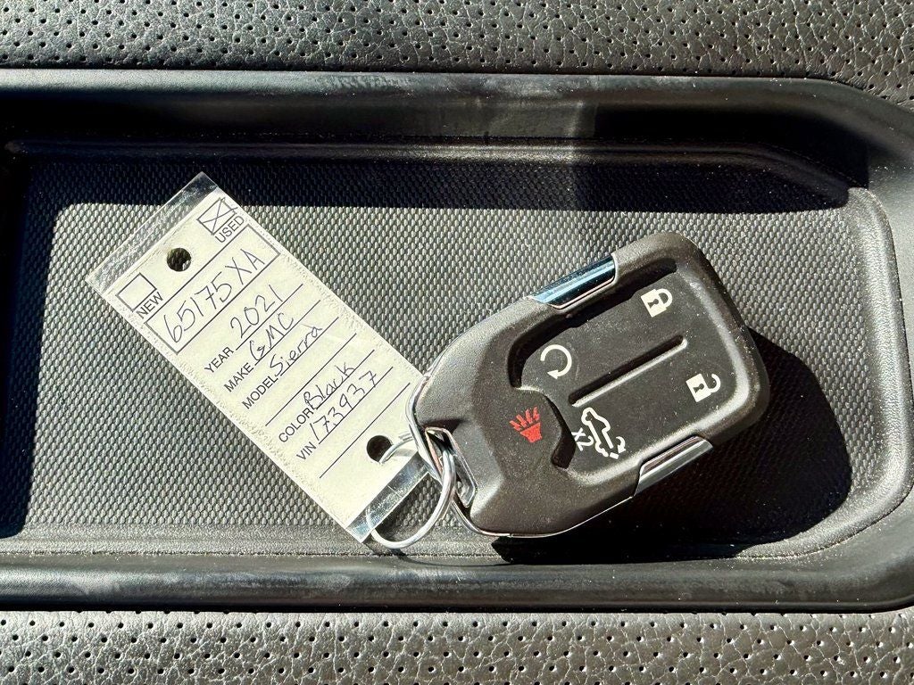 The 2021 GMC Sierra 1500 Denali offers an authoritative blend of premium luxury and commanding capability, finished in a striking Onyx Black exterior. Powered by the advanced EcoTec3 6.2L V8 engine delivering 420 horsepower and 460 lb-ft of torque, this full-size truck provides effortless towing power and confident performance through its responsive 10-speed automatic transmission and an intelligent AutoTrac active 4WD system with driver-selectable modes for supreme capability in all conditions.