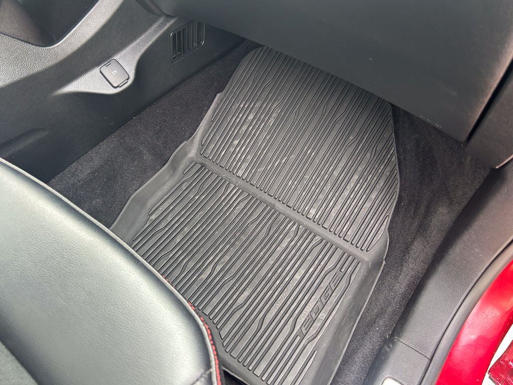 The distinctive ST Line trim outfits the Edge with aggressive 20-inch black aluminum wheels, performance-inspired all-season tires, and a unique black mesh grille. Inside, you'll find premium leather and suede seating surfaces, a leather-wrapped steering wheel with paddle shifters, and ebony interior accents with red stitching. The driver-focused cockpit offers a sporty yet versatile environment, along with dual-zone automatic climate control and an 8-inch touchscreen audio system with SYNC 4A connectivity.