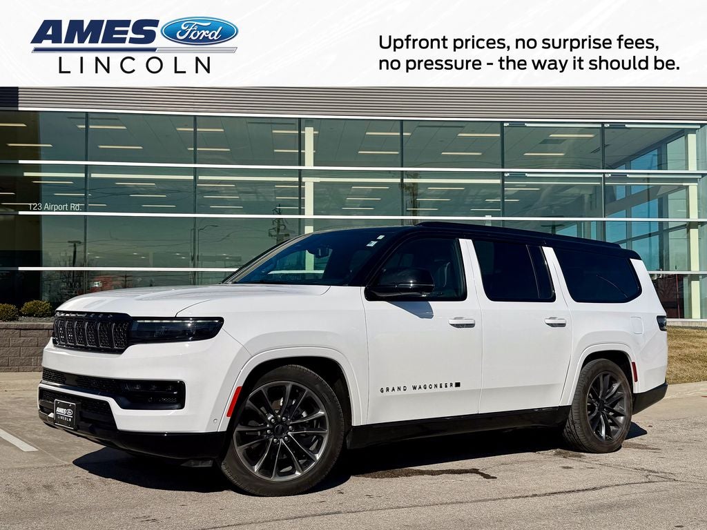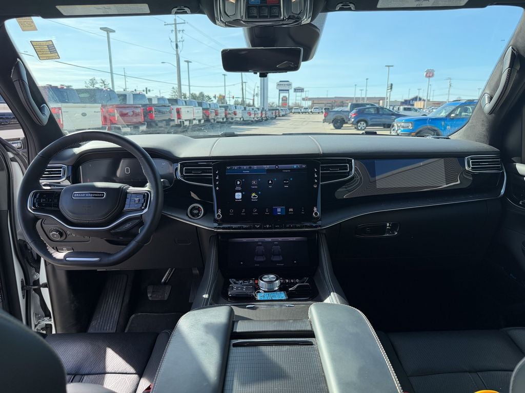 The 2025 Jeep Grand Wagoneer L Series II offers a commanding presence of American luxury and extended-length versatility, finished in a classic Bright White Clearcoat exterior. Powered by a responsive 3.0L Hurricane twin-turbocharged I6 engine delivering 510 horsepower and 500 lb-ft of torque, this flagship SUV provides effortless, powerful performance and confident towing through its advanced 8-speed automatic transmission and a robust Quadra-Drive II 4WD system with an electronic rear limited-slip differential for supreme capability in all conditions.
