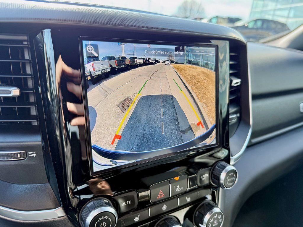 The popular Big Horn/Lone Star trim outfits the Ram 1500 with distinctive 18-inch aluminum wheels, all-season tires, and a grille with chrome accents. Inside, you'll find premium cloth-trimmed seats, a leather-wrapped steering wheel with audio controls, and a modern, functional interior. The spacious Crew Cab offers best-in-class rear legroom and versatile storage solutions, along with dual-zone automatic climate control and an 8.4-inch touchscreen Uconnect system with wireless connectivity for work and weekend utility.