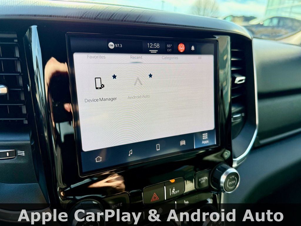 Advanced technology features include the Uconnect 5 infotainment system with wireless Apple CarPlay and Android Auto. The Ram 1500 also boasts an available Class IV receiver hitch and advanced safety features including available Adaptive Cruise Control for enhanced utility, comfort, and confidence.